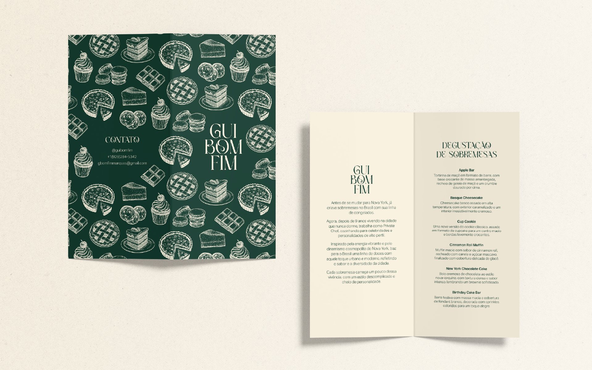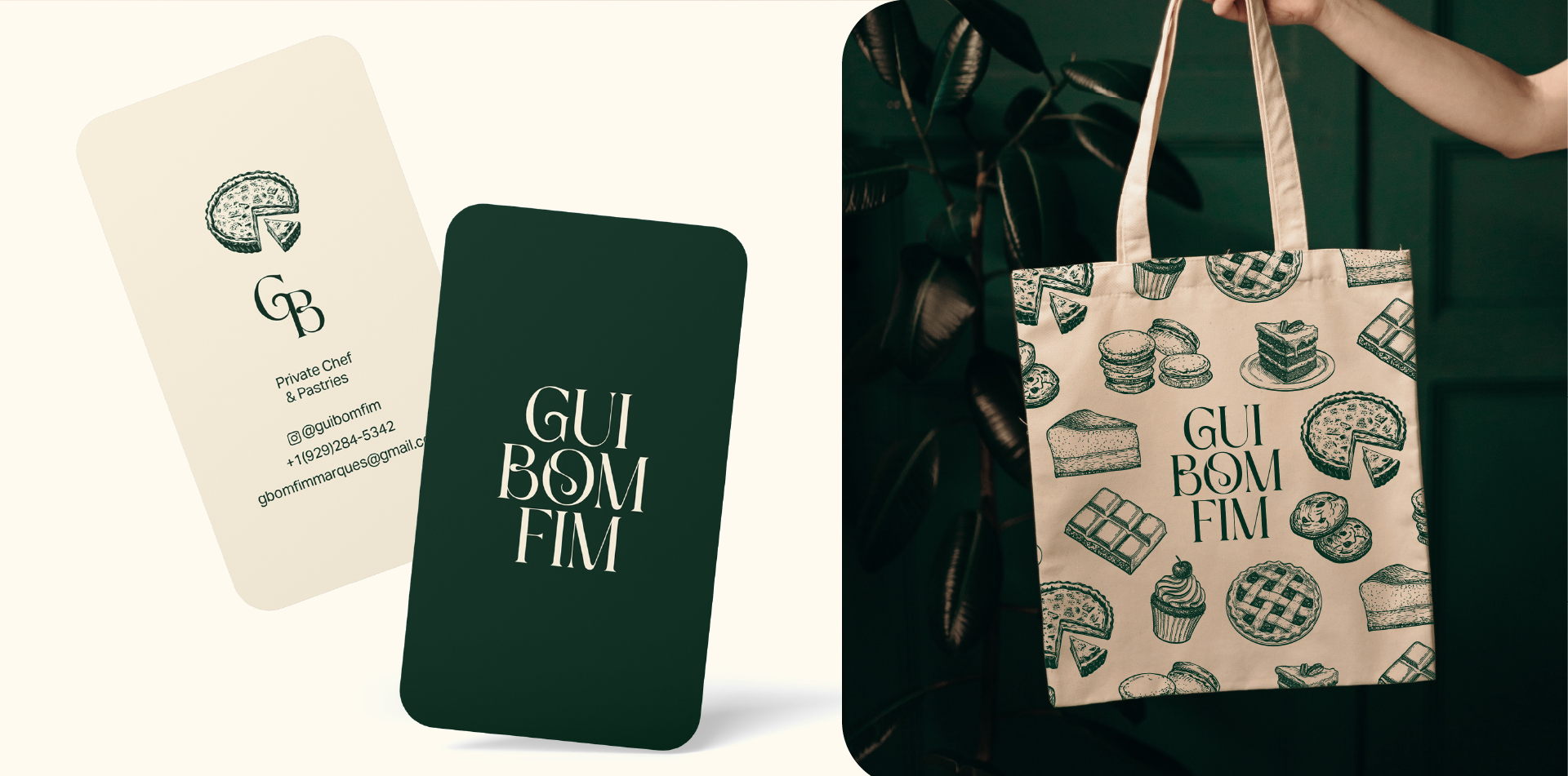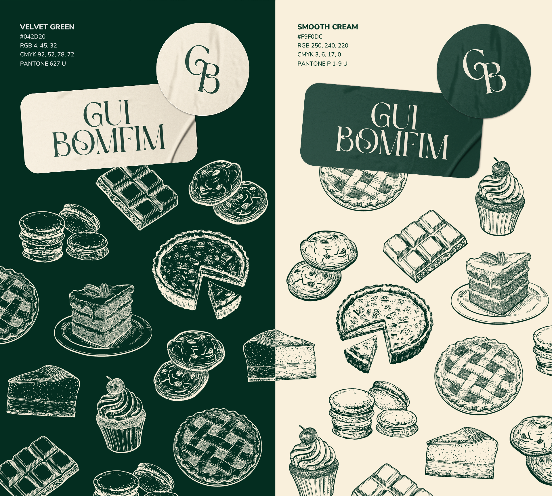 Branding and visual identity for Gui Bomfim, a private pastry chef originally from Brazil, now based in NYC. The brand reflects his fun and irreverent personality.